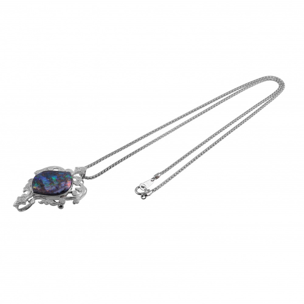 プラチナ900 プラチナ850 ボルダーオパール ダイヤモンド パール ネックレス