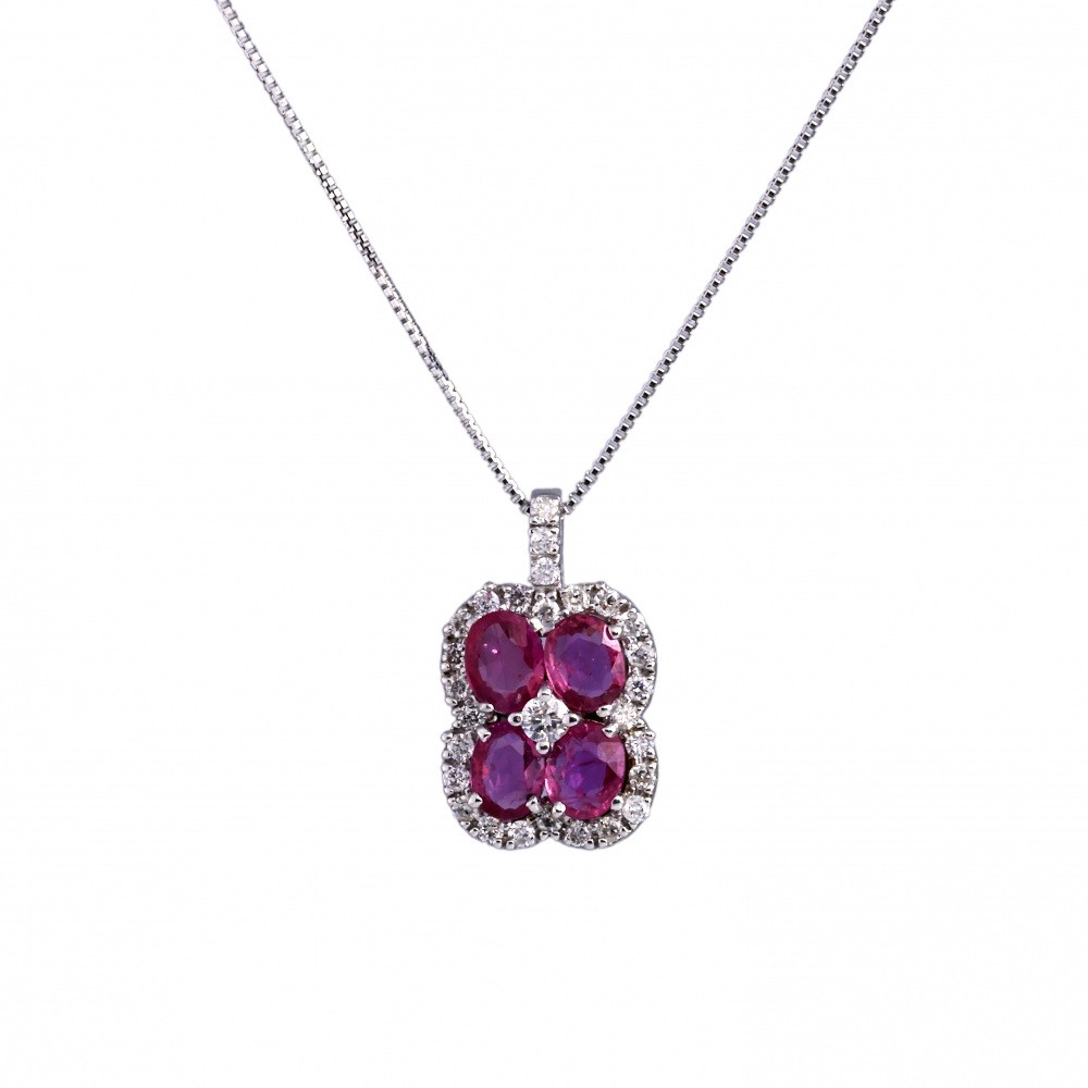 K18ホワイトゴールド ルビー ダイヤモンド ネックレス