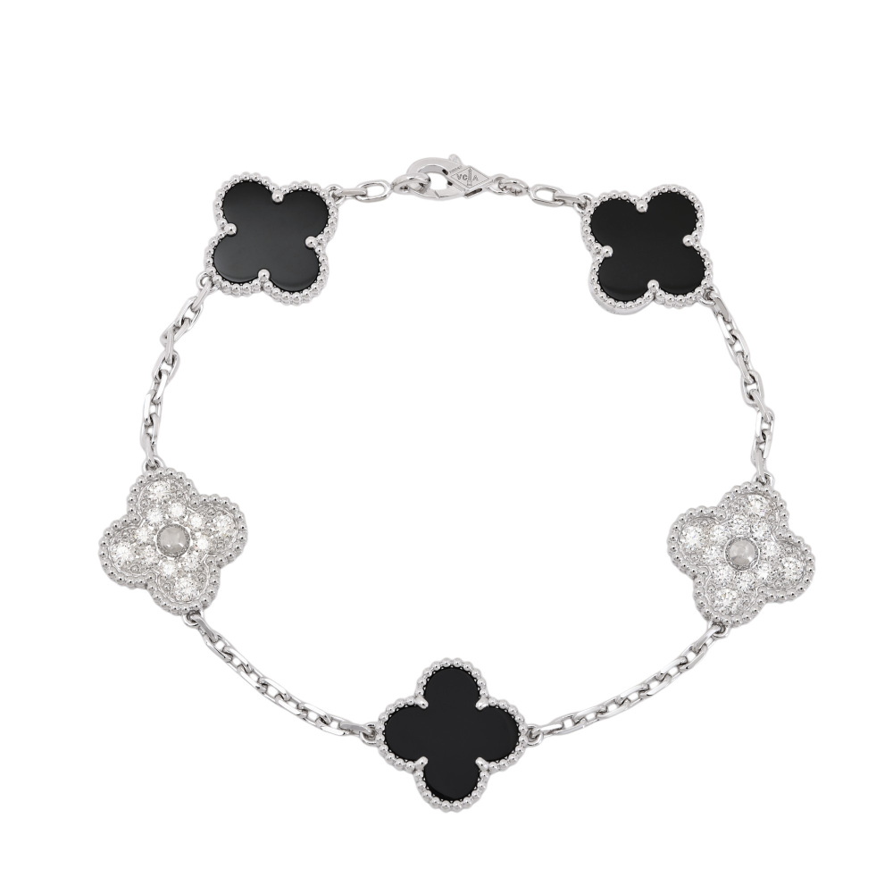 漆黒のものや縞模様のものが存在するオニキス(8月の誕生石)は、和名で「縞瑪瑙」よ呼ばれ、「成功」「厄除け」「忍耐」を象徴する宝石です。古来より魔除けや邪気払いの石として大切にされ、身につける人を守り、心を落ち着かせてくれるお守りジュエリーとして愛されてきました。落ち着いた色合いはシンプルながら存在感があり、男女問わず幅広いジュエリーに用いられています。
