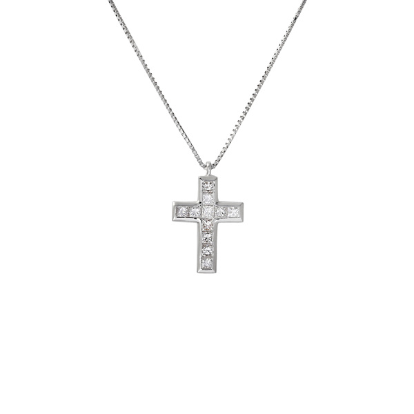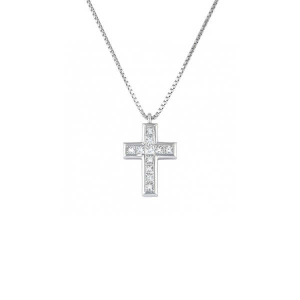 大人の魅力を引き出すクロスネックレス。シンプルな中にもラグジュアリー感あふれるデザインで上質な大人の魅力を胸元から演出。クラス感あふれるアイテムでリッチさをさりげなく醸し出します。プリンセスカットダイヤモンドをミステリーセッティングすることにより洗練された美しさと上品さが引き立てられます。サイズはSサイズとLサイズをご用意。素材はイエローゴールドとプラチナをお選びいただけます。ペアでつけてパートナーと楽しむのも大人のおしゃれな着こなしの一つです。