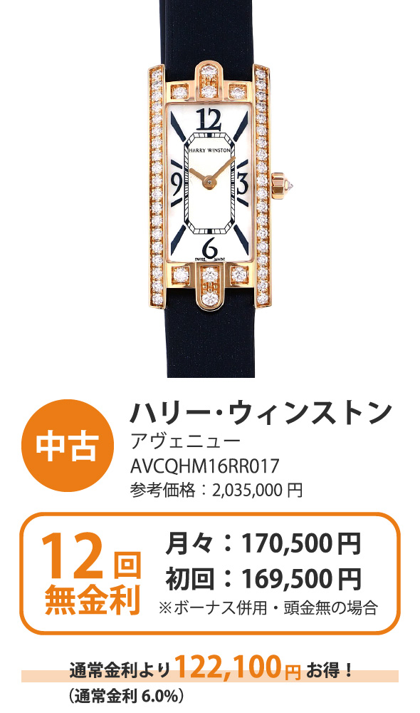 ※ロレックス・パテックフィリップ・オーデマピゲの全商品、および一部の特定商品については12回無金利キャンペーンの対象外となります。