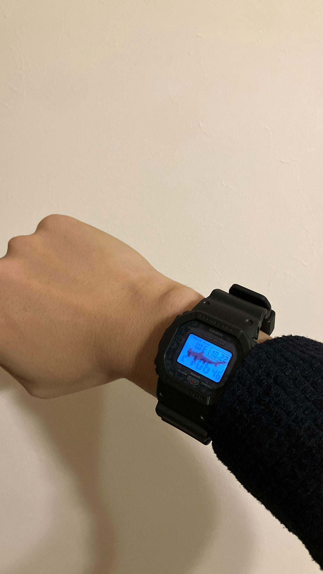 スマホに繋げて各種設定できるのが便利ですね。またバンド部分にシュモクザメがデザインされていてかわいいです。