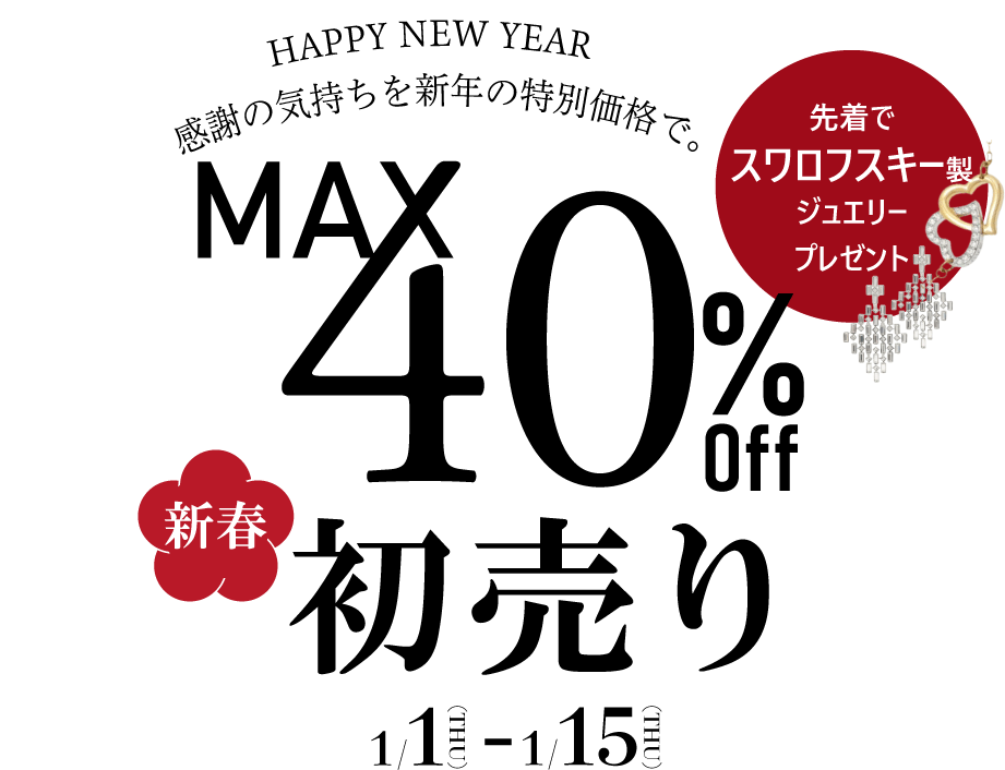 昨年は格別のご愛顧を賜り、厚く御礼申し上げます。本年も皆さまにとって素晴らしい一年となりますよう、スタッフ一同 全力でお手伝いさせていただきます。ゆきざきでは、感謝の気持ちを込めて新春初売りセールを開催しております。 新しい年を華やかに彩る特別な逸品を特別価格でご提案いたします。この機会をぜひお見逃しなく。 本年も変わらぬご愛顧を賜りますよう、どうぞよろしくお願い申し上げます。 新春ならではの特別なセールを心ゆくまでお楽しみください。
