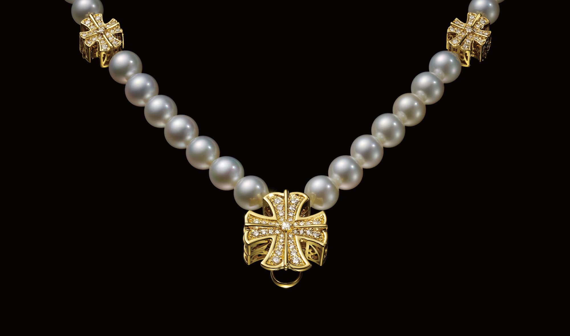 職人が1つ1つ手作業で作るラグジュアリーなクロスデザインと、上質なダイヤモンドを融合させたペンダントトップ「ダブルトップ」。