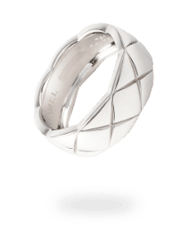 シャネルのアイコンを纏う。細身のゴールドにダイヤモンドを散りばめた、エタニティリングのような華やかさが魅力です。デニムなどのカジュアルスタイルにさらりと合わせれば、大人の余裕を感じさせる洗練された手元に。