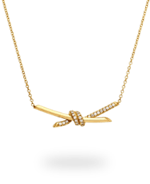 巨匠ジャン・シュランバージェの代表作。K18YGとダイヤモンドが織りなす「X」のクロスステッチが、芸術的な造形美を描きます。繊細かつ立体的な輝きは、胸元に知的な華やぎを添える至高の逸品です。