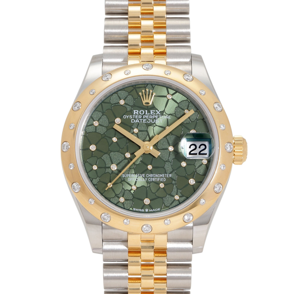 デイトジャスト 31 オリーブグリーン ダイヤモンド入りフローラルモチーフ
