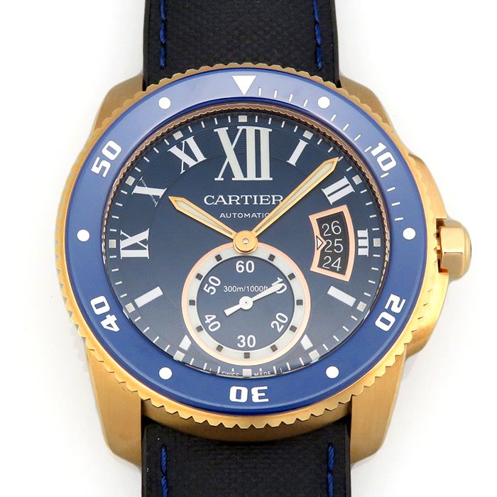 カルティエのウォッチメンズコレクションで人気のカリブルダイバー。こちらは、ピンクゴールドケースにブルーのベゼルを組み合わせたクールなカリブル ダイバー ブルー WGCA0009です。